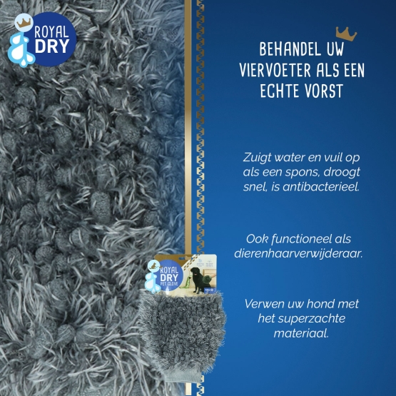Behandel de hond als royalty met de unieke absorberende handschoen van Royal Dry.
