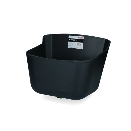 Duurzame zwarte kunststof voerbak (Polypropyleen).