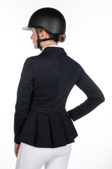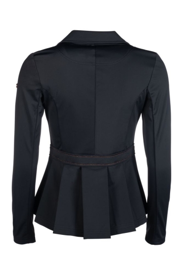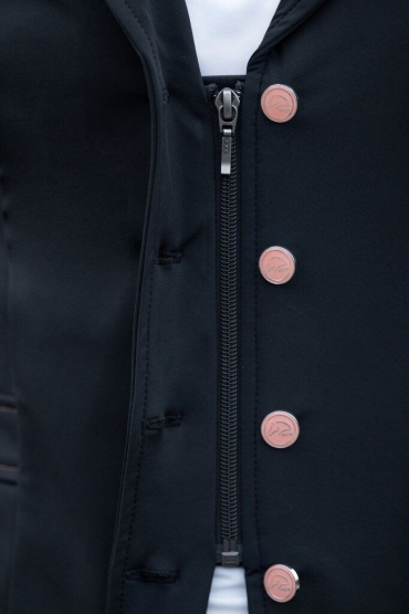 Het Eloise showjasje heeft een getailleerde snit en een ingebouwde plooi aan de achterkant voor een mooi silhouet. Het wordt gesloten door een rits verborgen door een elegante knoopsluiting. Fijne knopen in elegant roségoud, geven het jasje een vleugje glamour. Doordat de jas zowel vuilafstotend als kreukvrij is, wordt de verzorging van het kledingstuk tot een minimum beperkt.